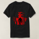 Bold and mysterious design featuring the silhouette of Bigfoot standing among tall forest trees with a striking red background. Perfect for cryptid lovers, campers, hikers, and fans of wilderness legends. Great for T-shirts, notebooks, or outdoor gear with a spooky adventure vibe.