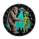 Dieses skurrile Bild illustriert eine freundliche Begegnung zwischen zwei legendären Wesen: Bigfoot und einer Alien. Die Szene, Set gegen einen Sternenhimmel mit Silhouetten von Kiefernbäumen, zeigt Bigfoot und die Alien, die Hände schüttelt unter dem Balken eines Ufo, der sich über. Bigfoot, mit braunem Fell bedeckt, steht auf dem links, während die grüne, humanoide Alien mit einem großen Kopf und schwarze Augen auf der rechten Seite steht. Die Kombination dieser ikonischen Figuren in einem friedlichen Treffen fügt beiden Mythen eine spielerische Drehung hinzu und macht sie zu einem faszinierenden und humorvollen Stück für die Enthusiasten des Unerklärten.