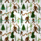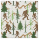 Bigfoots, die sich im Wald verstecken, mit Kiefern und Gebirgsketten auf weißem Hintergrund