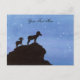 Eine Aquarellmalerei und ein Farbbild eines Bighorn Sheep, das an einem felsigen Punkt unter einem Sternenhimmel mit Orion the Hunter steht, schmückt diese Postkarte! Passen Sie den Text an, indem Sie ihn selbst in Anzug umwandeln! Anstrichen für Art-O-Mat.