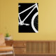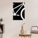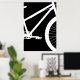 Dieses moderne Poster besticht durch eine überdimensionale Silhouette an der Vorderseite des Fahrrads auf schwarzem Hintergrund. Die Hintergrundfarbe lässt sich leicht ändern, indem Sie auf "Design bearbeiten" klicken. Dieser Ausdruck wird in einem weißen Rahmen angezeigt (nicht im Lieferumfang enthalten).