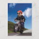 Baby als Biker verkleidet, auf einem Motorrad ein Rad schlagen