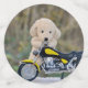Teddy Bär und Softspielhund auf einem Motorrad
