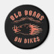 Das Fiktion-Logo für die Old Schoolers: Eberkopf mit flammendem Trail & Pinstripe Grafik, mit "Old Boars - On Bikes" in gotischer Schrift, in schwarz/rot. T - Shirt, Schweiß, Karten, Tasse, Knöpfe, Geschenke.