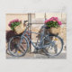 Ein Vintages Fahrrad Erholungen gegen ein altgediegenes europäisches Gebäude mit überlaufenen rosa Blume Körben. Diese romantische Reise-Szene besticht durch den Charme der alten Welt, ideal für Reiseblogs, Postkarten, Lifestyle-Marken und Stock-Fotografie im Frühjahr.