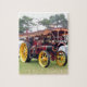 Bild eines reizenden roten und gelben Showmans Dampf-Zugkraft-Motors. Diese Motoren wurden Powerrummelplatzfahrten wie die galoppierenden Pferdekarussells in die Jahre vorbei gegangen.