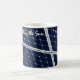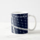 Schließen Sie die Ansicht eines Solarpaneels, um ökologisch saubere und erneuerbare Energie zu generieren, um Straßenlampen und andere Geräte füttern. Tief blauer Hintergrund und ein weißes Gitter. Kaffee-Tasse. Personalisierbar. Sie können das Bild ändern und zwei Vorlagentexte unabhängig voneinander ändern oder löschen: Mit der Sonne und Ja, Sie sind die Besten.