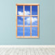3 Dimensionen Leinwand Fensterdarstellung - Wolken Es kann immer Sommer sein, wenn dieses Fensterbild den Himmel zeigt, mit flauschigen weißen Wolken, die im Himmel schweben. Dieser Fotodruck ist auf gedehnter Leinwand auf einem Holzrahmen montiert und bietet eine Tiefe von 4,5 Zoll für einen echten 3D-Effekt. Der Fensterrahmen aus Holz, der im Bild angezeigt wird, wurde so platziert, dass ein Fake an der Wand angebracht wird. Genießen Sie einen entspannenden Blick auf die Natur, ganz gleich, wie das Wetter im Freien aussieht!