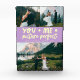 Whimsical-and-playful-Hochzeitsgeschenk mit 3 Fotos der Neuvermählten und einer typografischen Textzeile, die "Du + ich = Bild der Vollkommenheit" sagt. Limonengelbe Wisterie.