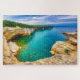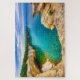 Der Blick auf die Sandsteinfelsen rund um den türkisblauen See Superior am Pictured Rocks National Lakeshore in Michigan