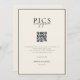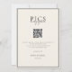 Elegant, modern, Handschrift, Beige, Hochzeit "Bilder passieren!" Karte mit Coupons Name und Hochzeitdatum, inkl. QR-Code für Foto Gallery. Feiern Sie Ihre Liebe und begrüßen Sie Ihre Gäste stilvoll mit unserer persönlichen Willkommenskarte! Diese minimale Karte ist nicht nur eine elegante Dekoration für Ihre Hochzeit, sondern auch ein interaktiver Sake, der Ihre Gäste einbindet. So viele Bilder werden von Gästen auf einer Hochzeit gemacht, die das Paar oft nie zu sehen bekommt. Wenn Sie gewollt haben, eine Galerie für Fotos zu erstellen, in der Ihre Gäste die Fotos hochladen können, ist diese Karte für Sie ideal. Es gibt viele Anbieter, wie z.B. Dropbox, wo Sie eine kostenlose Online-Galerie im Voraus erstellen können. Dann können Sie einfach Ihre Karte anpassen, indem Sie Ihren Namen, das Datum und den Link zu Ihrer Foto-Galerie eingeben. So haben Sie etwas ganz Besonderes für Ihren großen Tag.