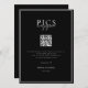 Elegant, modern, Handschrift, Schwarz, Hochzeit "Bilder passieren!" Karte mit Coupons Name und Hochzeitdatum, inkl. QR-Code für Foto Gallery. Feiern Sie Ihre Liebe und begrüßen Sie Ihre Gäste stilvoll mit unserer persönlichen Willkommenskarte! Diese minimale Karte ist nicht nur eine elegante Dekoration für Ihre Hochzeit, sondern auch ein interaktiver Sake, der Ihre Gäste einbindet. So viele Bilder werden von Gästen auf einer Hochzeit gemacht, die das Paar oft nie zu sehen bekommt. Wenn Sie gewollt haben, eine Galerie für Fotos zu erstellen, in der Ihre Gäste die Fotos hochladen können, ist diese Karte für Sie ideal. Es gibt viele Anbieter, wie z.B. Dropbox, wo Sie eine kostenlose Online-Galerie im Voraus erstellen können. Dann können Sie einfach Ihre Karte anpassen, indem Sie Ihren Namen, das Datum und den Link zu Ihrer Foto-Galerie eingeben. So haben Sie etwas ganz Besonderes für Ihren großen Tag.
