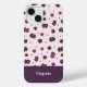 Eine Telefonzelle mit einem Feigenmuster auf einem hellrosa Hintergrund und am unteren Ende ein benutzerdefinierbarer Vorname oder Text Ihrer Wahl auf einem lila Hintergrund. Ein schönes Geschenk für einen Freund, der Obst Lieben.