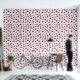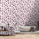 Tapete mit einem Feigenmuster auf einem hellrosa Hintergrund und lila Polka-Punkten: ein hübsches Geschenk für einen, der gerade umgezogen ist, oder für Ihre Zuhause-Dekoration!