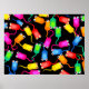 Illustration von vielen bunten Computermäusen, die mit Cartoon- und Maus-Schwänzen auf schwarzem Hintergrund herumlaufen. Bilder auf verschiedenen Geschenken und Produkten erhältlich.