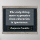 Bildung zitieren - Benjamin Franklin - Das Einzige, was teurer ist als Bildung, ist Ignoranz.
