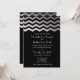 Das schicke und kühne, moderne zag Zickzack Design mit Pariser Schriftart ergänzt Ihr Schwarz-Silber-Hochzeitsthema und ermöglicht es Ihnen, diese zweiseitige zweisprachige Hochzeitseinladung so zu gestalten, dass sie dem Erbe Ihrer Nachwuchskollegen gerecht wird (Englisch und Spanisch vorgeführt, aber alle Zazzle-Schriftart-Sprachen wie Französisch, Deutsch, Philippino, Portugiesisch und Italienisch). Hervorragend für jeden Deko, trendige oder einfach elegante Schwarze Krawatte Hochzeit. Passen Sie die Hintergrundfarbe, den Schriftart und die Sprache an, um dies zu einer personalisierten Einladung zu machen. Brauchen Sie keine zweisprachigen Einladungen? Leg einfach den Rücken frei und du bist alle Set!