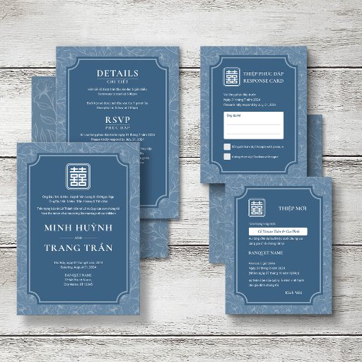 Bilingual Vietnamese Blue Song Hy Wedding RSVP