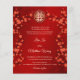 HAUSHALTSPAPIER Diese Version hat die Namen der Eltern in der Überschrift. Rote Kirschblüten Zweige und ein goldenes doppeltes Glückssymbol auf einem roten Hintergrund. Mit einem traditionellen chinesischen Text auf der Rückseite.