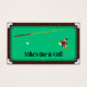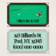 Diese Visitenkarte beinhaltet einen Billardtisch mit einem Billardtisch, einem Cue-Ball und Billardkugeln. Das Bild wird auf der Rückseite wiederholt, mit zwei transparenten Bildern oben. Der gesamte Text ist vollständig anpassbar.