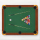 Für Poolhaifische und Billiardspieler, Billardtischgraphik mit stark beanspruchten Bällen und zwei Poolstöcke.