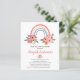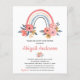 Personalisieren Sie diese Coral Blush Pink Floral Watercolor Vintag Style Rainbow Baby Baby Baby Baby Dusche oder Baby Sprinkle Budget Freundliche Einladung auf weißem Hintergrund mit Ihrer Nachricht und Details. Diese schicke Einladung beinhaltet Blume der Rose und moderne botanische Vegetation mit niedlicher und eleganter Schrift-Typografie für die besondere Mutter zu sein zu feiern.