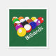 Billiard Balls Designpapier Napkins mit anpassbarem Text und Hintergrundfarbe.