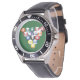 Herrenuhr aus Edelstahl mit schwarzem Lederarmband