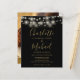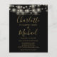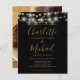 Mit hübschen Saitenlichtern und Ihren Foto- und Untertitelstil-Namen kann diese elegante, preiswerte Schwarz-Gold-Hochzeitseinladung mit Ihren Informationen in schicker Schrift personalisiert werden. Entwickelt von Thisisnotme©