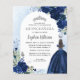 Blauer Blauer Silbergrau Prinzessin Gown Dress Glitzer Sparkle Tiara Crown Butterfly 15. Geburtstag Quinceanera Einladung