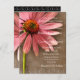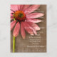 Die schöne elegante Rosa Gerber Daisy Wedding Einladung auf braunen Imitaten bedruckte Linen Texture Background gibt diesem ein Bauernhaus Rustic Country fühlen sich perfekt für eine bohenhafte Böhmische Freiluft-Hochzeit.