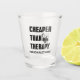 Ein lustiges, individuelles Glas mit dem Zitat "Billiger als Therapie".