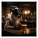 In einer sonderbaren Drehung der Realität sitzt eine bekleidete Billy-Ziege selbstbewusst am Theken einer rustikalen Bar. Sein grobes Fell und seine spiralförmig geschwungenen Hörner verleihen ihm einen schroffen Charme, während es sich zu einem Bier hinleitet. Die warme, dunkle Beleuchtung der Bar wirft ein goldenes Licht über die Holztheke. Dieser skurrile Augenblick vereint Unheil und Spaß, wo das Unerwartete zum Herzstück des Abends wird.