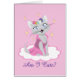 Dieses hübsche Kätzchen trägt ein niedliches rosa Kleid und eine Blume! Im Text steht: "Bin ich niedlich?"