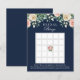 Die Elegance Navy Blue Floral Brautparty Game Card ist mit romantischen, rosa und beige Rose mit grünen Blätter auf marineblau Hintergrund und elegantem Drehbuch ausgestattet. Die Rückseite dieser Bingo Game Card ist marineblau.