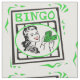 Dieser Entwurf hat eine schräg gelegene Bingokarte mit einer Einfügung einer Frau, die Geld hält.