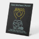 Fun Tabletop Schild mit neongelben und blauen Bingo Night Line Kunst Grafiken auf schwarzem Hintergrund. Ideal für Kirchenbingo, Bingohallen und Spendenaktionen.