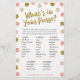 Viel Spaß beim Duschen mit diesem lustigen Bingospiel! Dreh es um und spiele was in deiner Handtasche ist. Fügen Sie den personalisierten Text mithilfe des Vorlagenformulars hinzu. Die Formulierung kann geändert werden, um sie für eine Babydusche, Brautparty, Geburtstagsparty usw. geeignet zu machen.