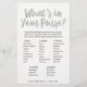 Viel Spaß beim Duschen mit diesem lustigen Bingospiel! Dreh es um und spiele was in deiner Handtasche ist. Fügen Sie den personalisierten Text mithilfe des Vorlagenformulars hinzu. Die Formulierung kann geändert werden, um sie für eine Babydusche, Brautparty, Geburtstagsparty usw. geeignet zu machen.