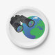 Dieses Design ist Fernglas und Erde. Die Ferngläser sind groß und überlagern den Globus. Dieses Fernglas und das Erddesign sehen großartig auf diesen Paper-Tellern aus