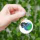 Dieses Design ist Fernglas und Erde. Die Ferngläser sind groß und überlagern den Globus. Dieses Fernglas und Erddesign sehen auf diesem Schlüsselanhänger großartig aus