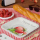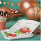 Bio Design mit Tomaten und Pilzen. Dieses Design wirkt auf diese Paper-Teller sehr effektiv