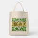 Bio ein grüner Slogan für Gärtner, Köche und Feiern zum Tag der Erde, in dekorierten Hauptstadt Buchstaben vor einem Hintergrund von Eichen und Eichen Blätter, umgeben von scrollenden Blätter.