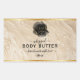 Karosserietablett mit cremefarbenem Hintergrund mit Logo und eleganter Schriftzeichen. Perfektes Gold- und Weißetikett für hausgemachte Karosseriebuttergeschäfte.