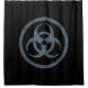 Schwarzer Duschvorhang mit einem Warnsymbol für die graue Biogefährdung.