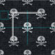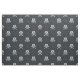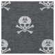 Biogefährdungsymbolschädel und -gekreuzte Knochen mit einem grauen Ziegelsteinwandhintergrund.