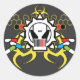 Insomniak Tech Skull Serie - Biogefährdung Edition. Die Chemical Hazards Grafik zeigt Roboterschädel, Biogefährdung-Symbole und farbige Pillen. Wir haben auch passende Skateboarddecks!