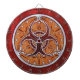 Ein schönes Imitatholz legte Biogefahrensymbol mit Schnörkel ein und Imitat perlt die Ordnung, in Handarbeit gemacht nur im feinsten des digitalisierten Bildes, das Software redigiert.