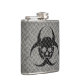 Biogefahrenzeichen und Schädel auf Stahl Flachmann