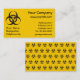 Warnsymbol für die schwarze Biogefährdung auf gelbem Hintergrund. Eigener Text. Nahtloses Muster auf der Rückseite.
